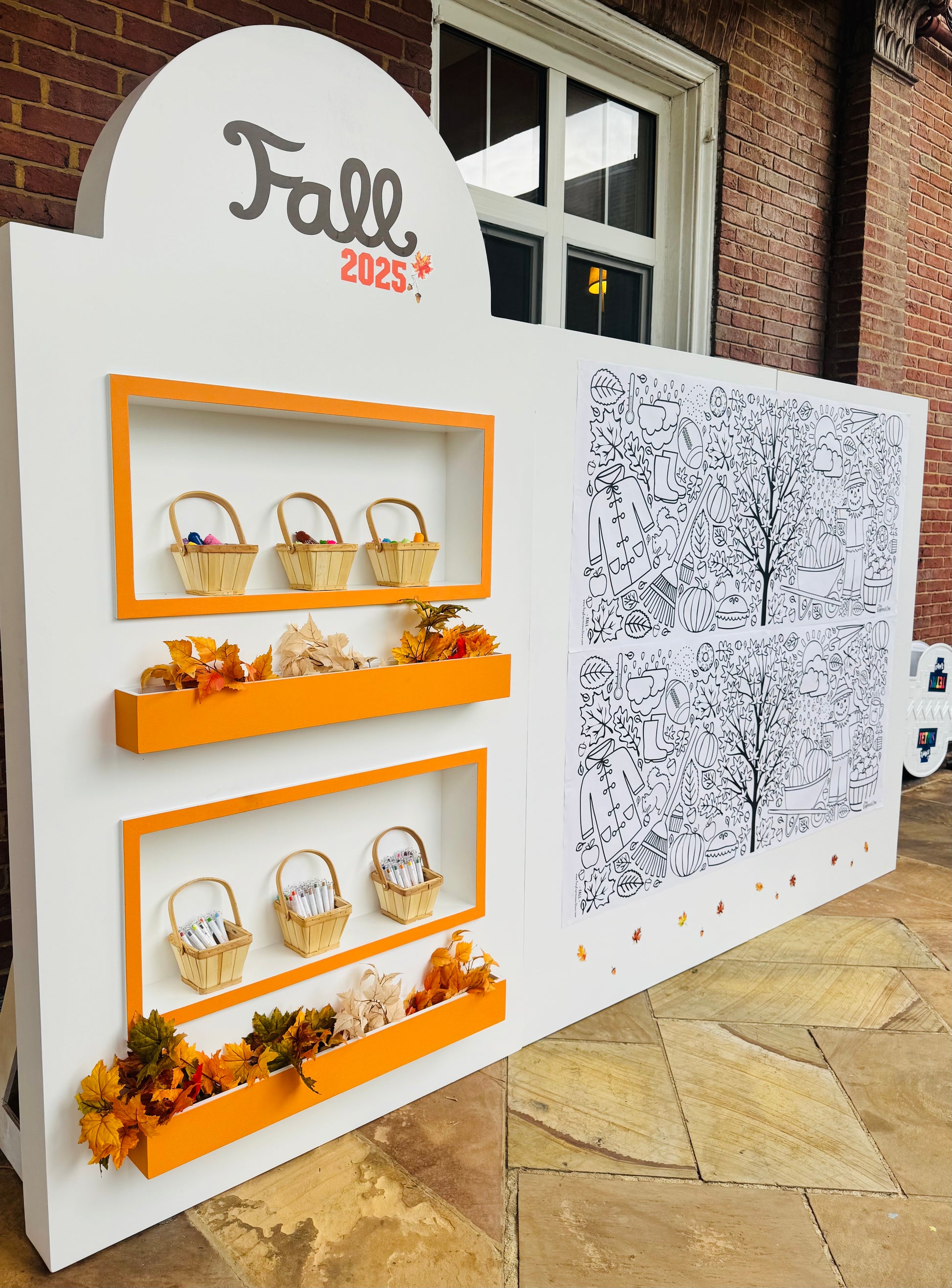 It includes any themed coloring wall, wooden wall, name or phrase decal & 6 basket with washable markers .