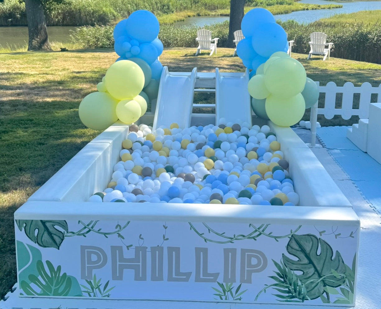 THIS IS FOR PLAY AREA THAT INCLUDES A 5ft, round 9ft or 6x9 ft ball pit . Personalization includes decal full design + name on ball pit & cubes decals